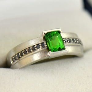 Modern Emerald & Diamond Two-Stone Negative Space Ring