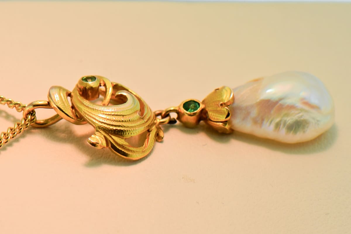 Art Nouveau River Pearl & Demantoid Garnet Lavalier