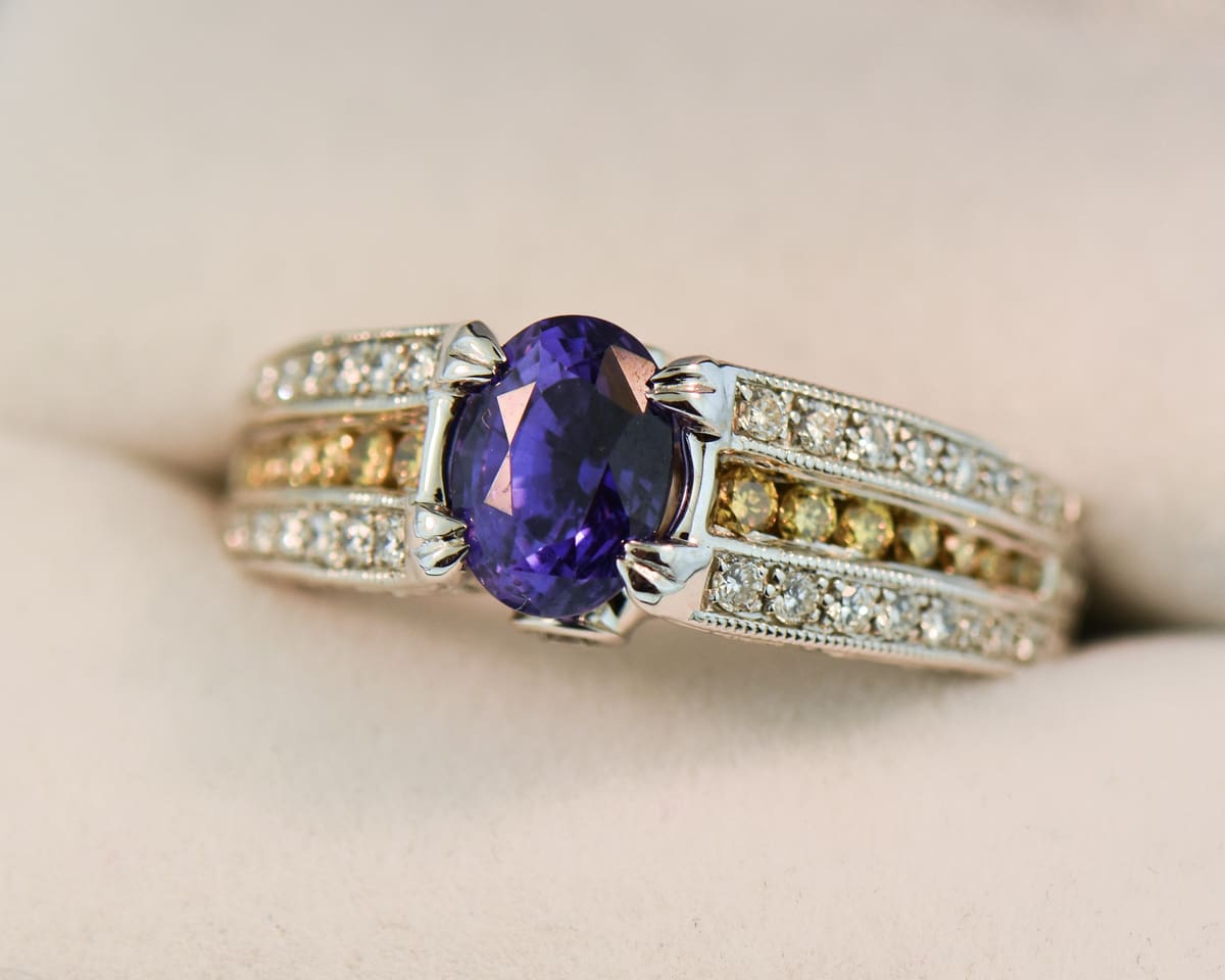 Custom Purple Sapphire & Yellow Diamond Ring