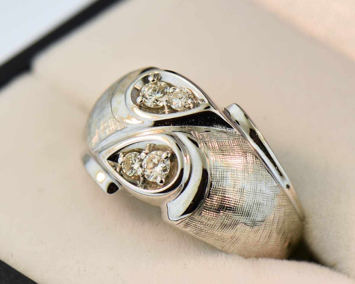 Gents Mid Century White Gold & Diamond Bypass Ring