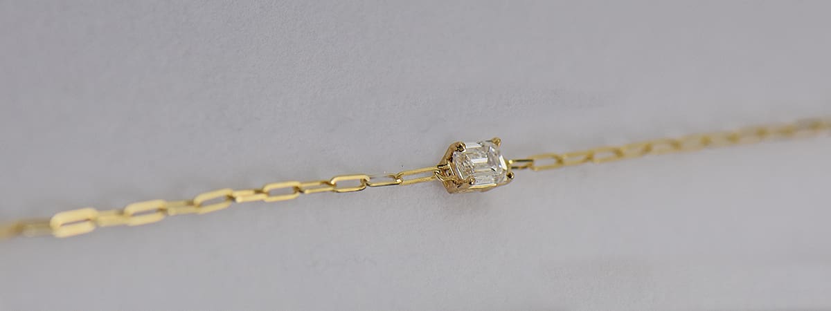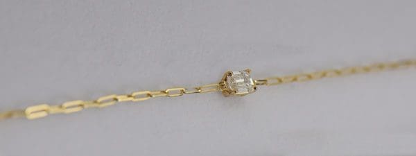 Gold Paperclip Bracelet with Emerald Cut Diamond